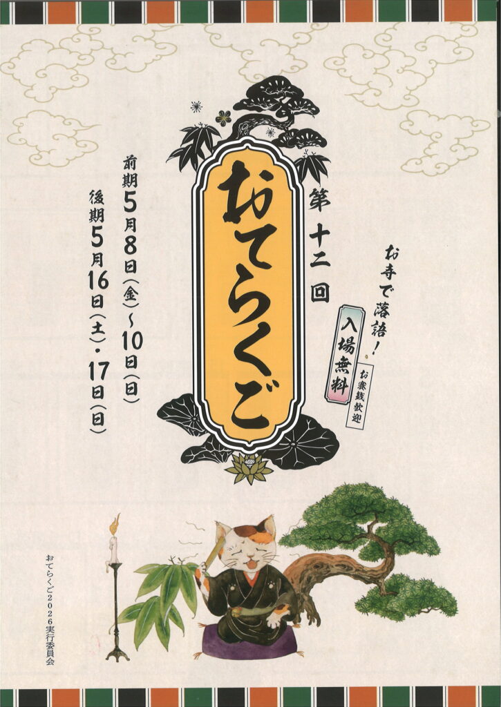 令和8年5月9日(土)「おてらくご」を開催いたします(本誓寺会場)。